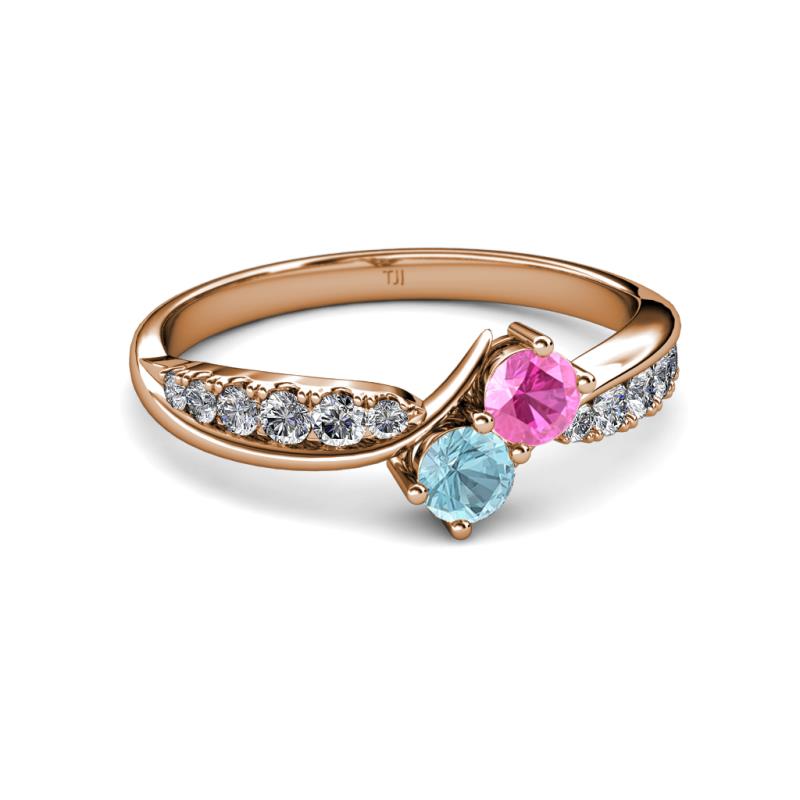 Pink Sapphire and Aquamarine 2 Stone with Side Diamonds Bypass Engagement Ring 0.76 ct tw in 14K Rose Gold. More Details ...
