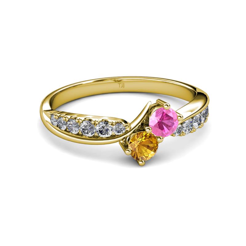 Pink Sapphire and Citrine 2 Stone with Side Diamonds Bypass Engagement Ring 0.76 ct tw in 14K Yellow Gold. More Details ...