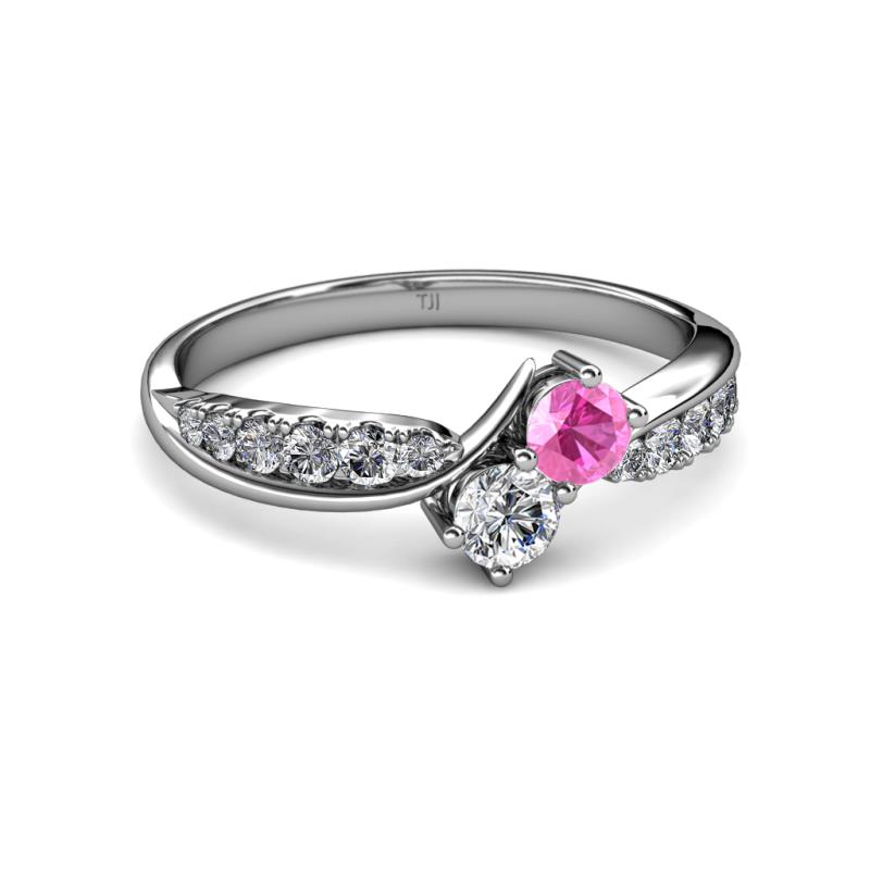 0.81 ctw Pink Sapphire and Diamond (4.00 mm) accented Natural Diamonds Women Two Stone Bypass Engagement Ring in 14K White Gold. More Details ...