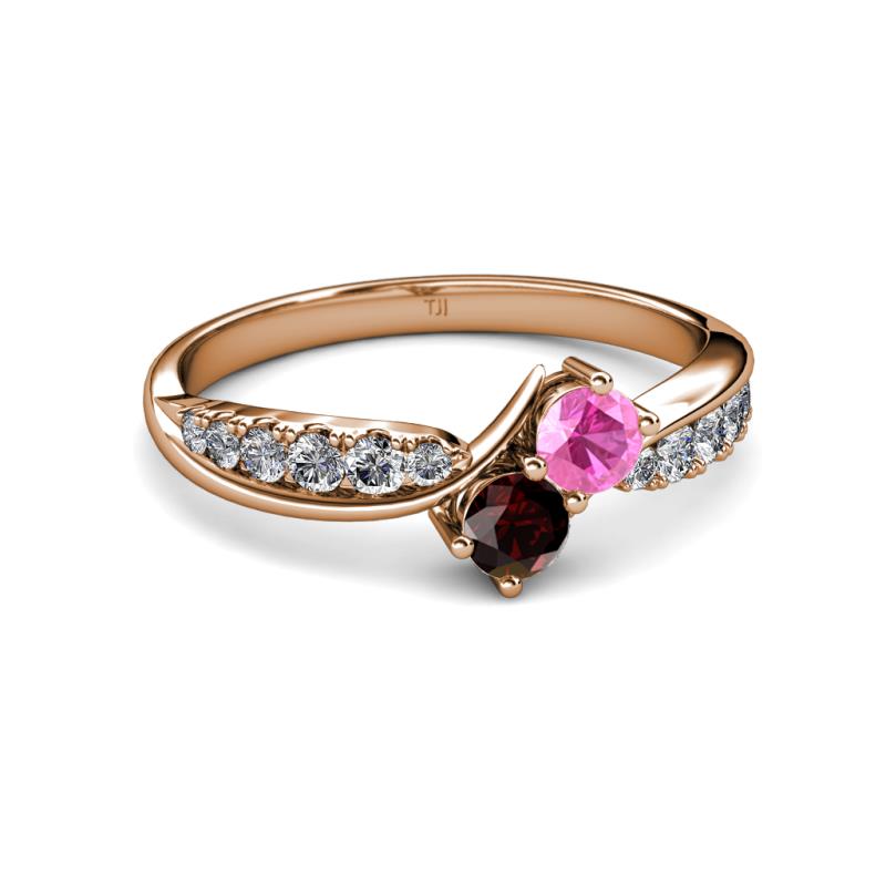 Pink Sapphire and Red Garnet 2 Stone with Side Diamonds Bypass Engagement Ring 0.88 ct tw in 14K Rose Gold. More Details ...