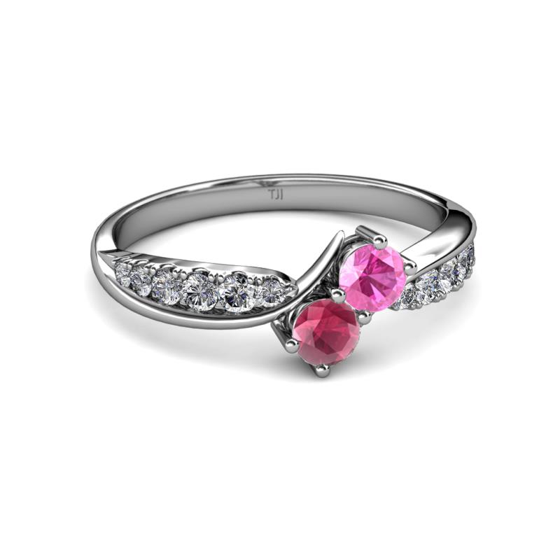 Pink Sapphire and Rhodolite Garnet 2 Stone with Side Diamonds Bypass Engagement Ring 0.88 ct tw in 14K White Gold. More Details ...