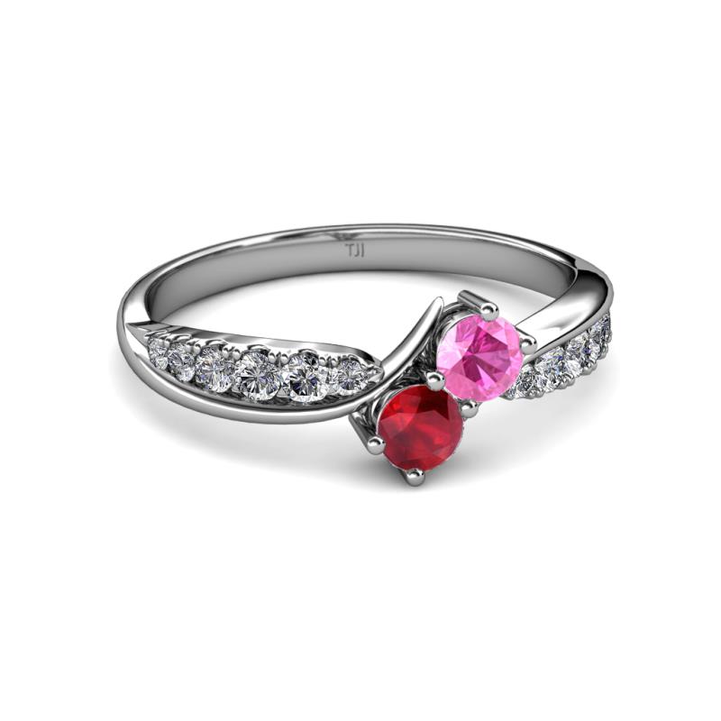 Pink Sapphire and Ruby 2 Stone with Side Diamonds Bypass Engagement Ring 0.82 ct tw in 14K White Gold. More Details ...