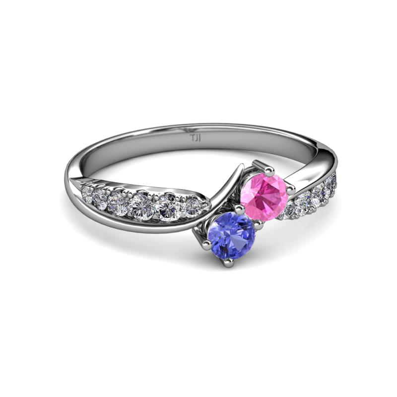 Pink Sapphire and Tanzanite 2 Stone with Side Diamonds Bypass Engagement Ring 0.79 ct tw in 14K White Gold. More Details ...