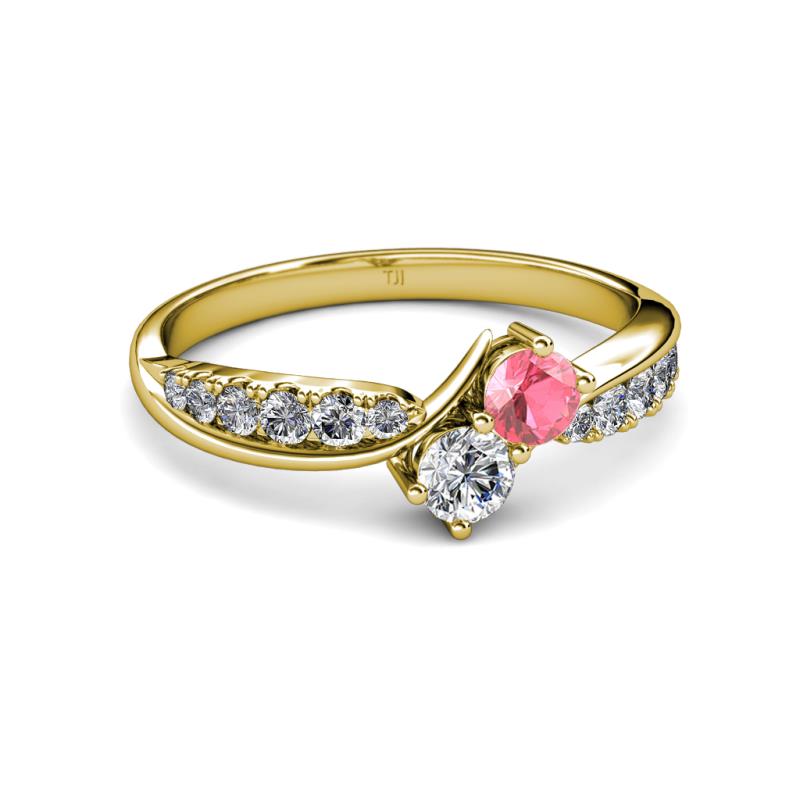 0.75 ctw Pink Tourmaline and Diamond (4.00 mm) accented Natural Diamonds Women Two Stone Bypass Engagement Ring in 14K Yellow Gold. More Details ...
