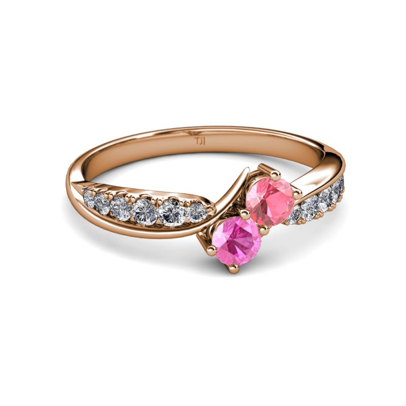 Pink Tourmaline and Pink Sapphire 2 Stone with Side Diamonds Bypass Engagement Ring 0.76 ct tw in 14K Rose Gold. More Details ...
