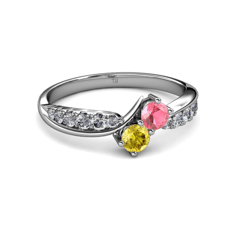Pink Tourmaline and Yellow Sapphire 2 Stone with Side Diamonds Bypass Engagement Ring 0.76 ct tw in 14K White Gold. More Details ...