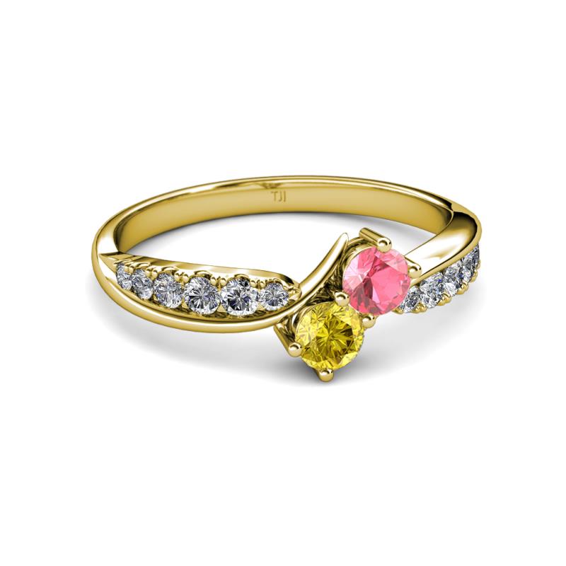 Pink Tourmaline and Yellow Sapphire 2 Stone with Side Diamonds Bypass Engagement Ring 0.76 ct tw in 14K Yellow Gold. More Details ...