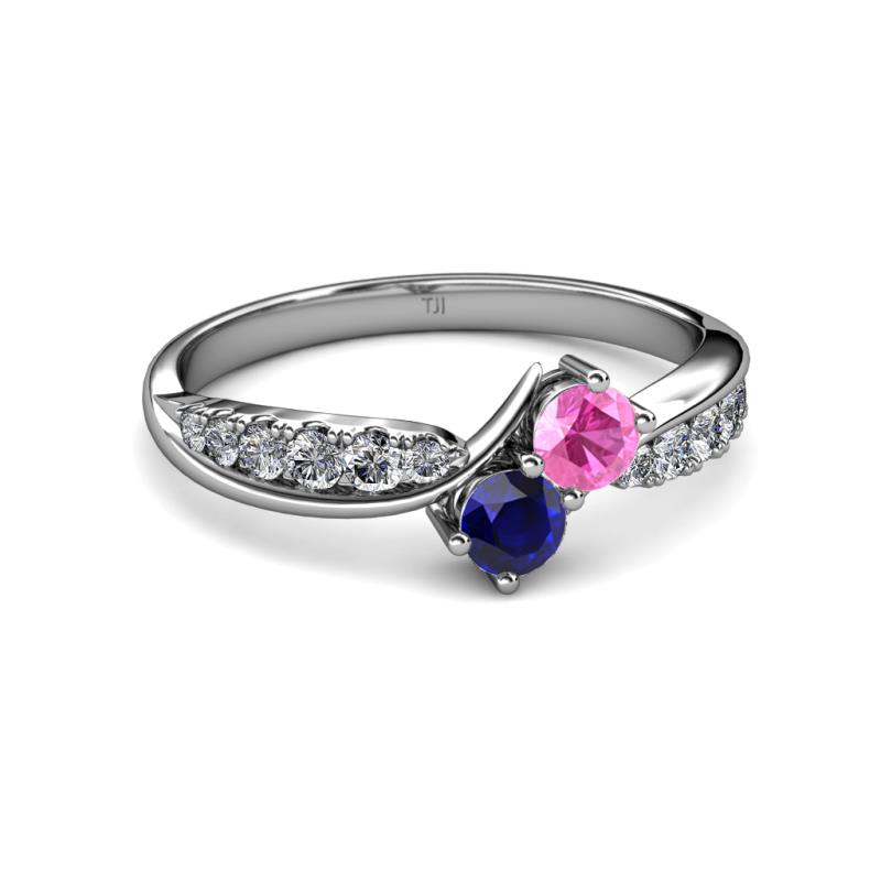 A Bypass Ring with a contemporary twist where Pink Sapphire & Blue Sapphire representing love & friendship are beautifully captured in the twisted split with Diamonds illuminating the shoulders signifying your unbreakable bond.