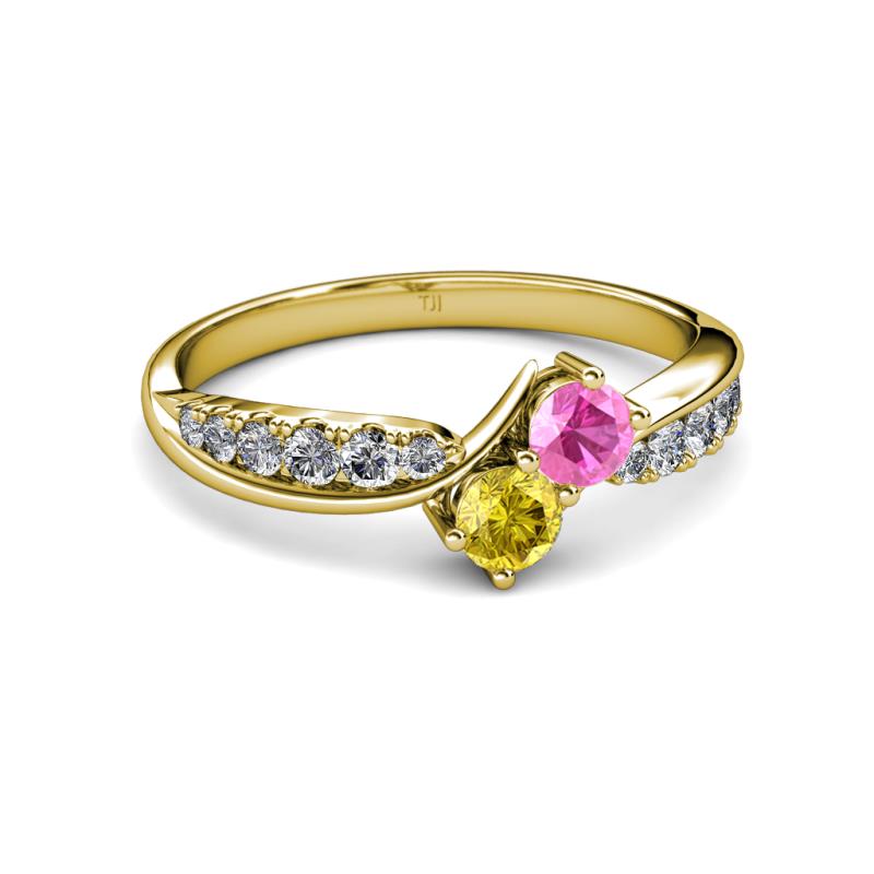 Pink and Yellow Sapphire 2 Stone with Side Diamonds Bypass Engagement Ring 0.83 ct tw in 14K Yellow Gold. More Details ...
