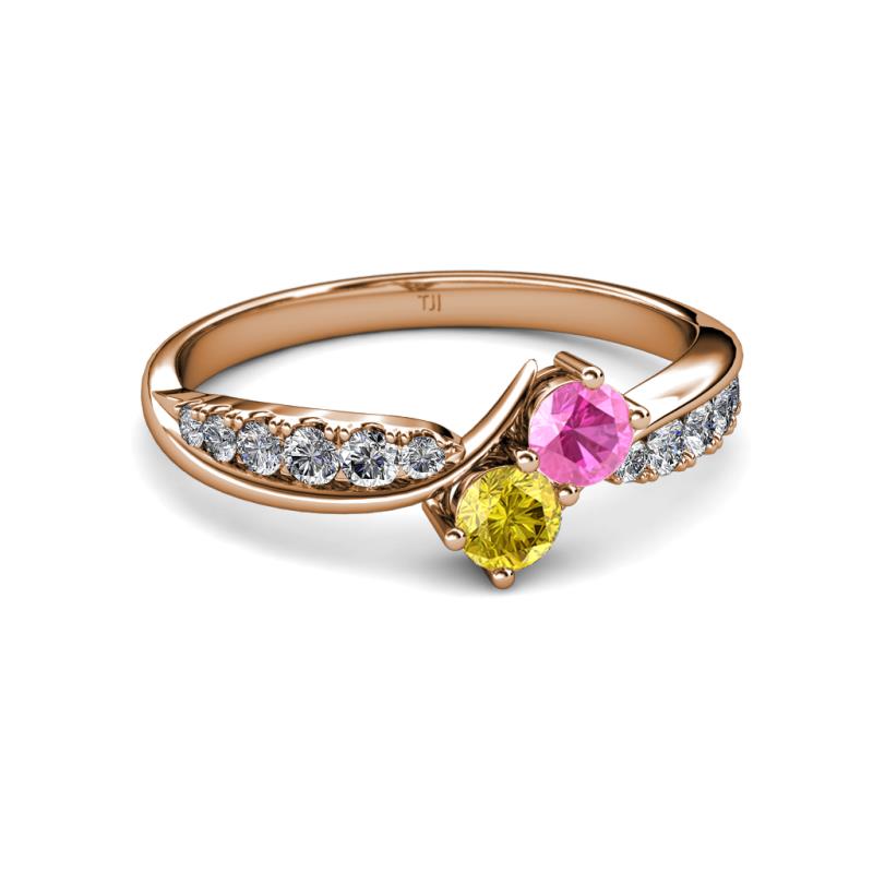 Pink and Yellow Sapphire 2 Stone with Side Diamonds Bypass Engagement Ring 0.83 ct tw in 14K Rose Gold. More Details ...