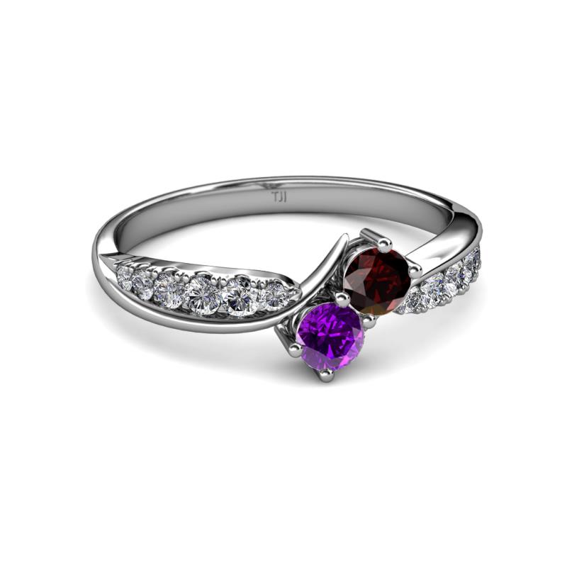 Red Garnet and Amethyst 2 Stone with Side Diamonds Bypass Engagement Ring 0.82 ct tw in 14K White Gold. More Details ...