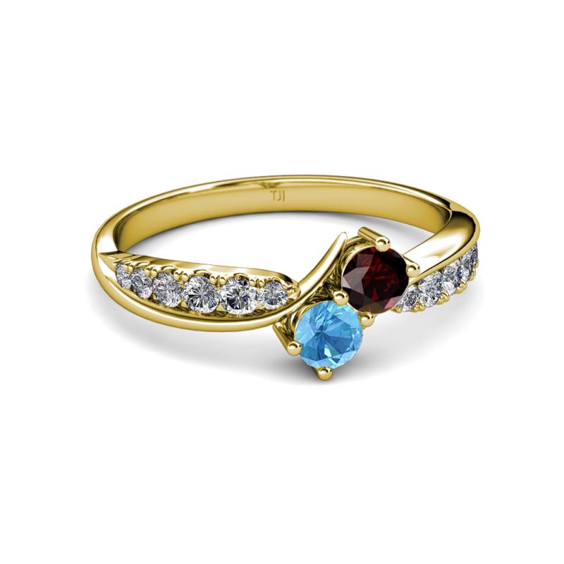 Red Garnet and Blue Topaz 2 Stone with Side Diamonds Bypass Engagement Ring 0.84 ct tw in 14K Yellow Gold. More Details ...