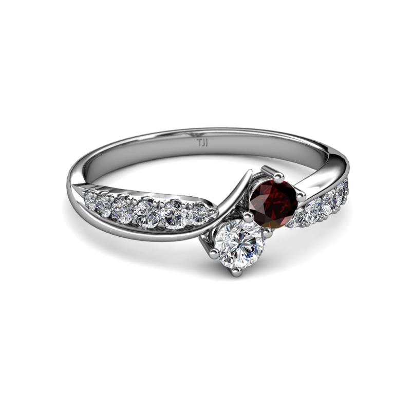 Red Garnet and Diamond 2 Stone with Side Diamonds Womens Bypass Engagement Ring 0.87 ctw 14K White Gold More Details ...