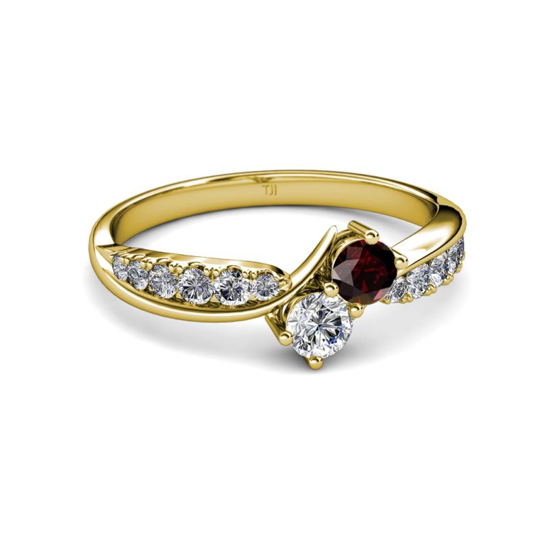 Red Garnet and Diamond 2 Stone with Side Diamonds Womens Bypass Engagement Ring 0.87 ctw 14K Yellow Gold More Details ...