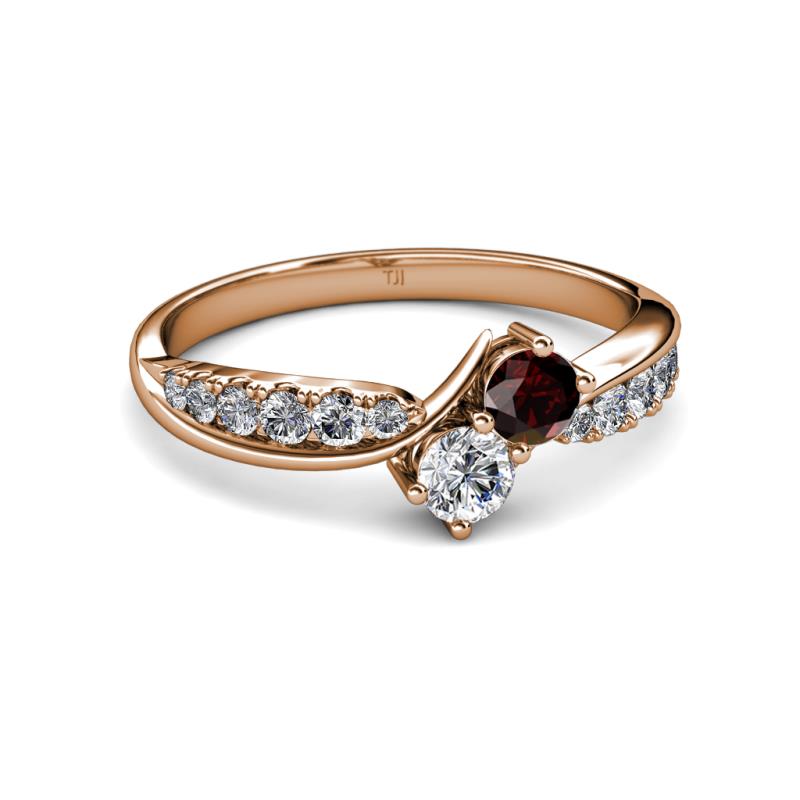 Red Garnet and Diamond 2 Stone with Side Diamonds Womens Bypass Engagement Ring 0.87 ctw 14K Rose Gold More Details ...