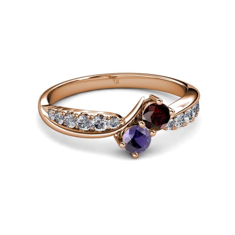 Red Garnet and Iolite 2 Stone with Side Diamonds Bypass Engagement Ring 0.82 ct tw in 14K Rose Gold. More Details ...