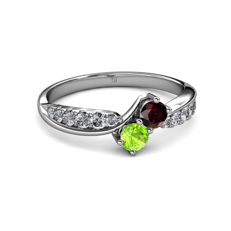 Red Garnet and Peridot 2 Stone with Side Diamonds Bypass Engagement Ring 0.94 ct tw in 14K White Gold. More Details ...