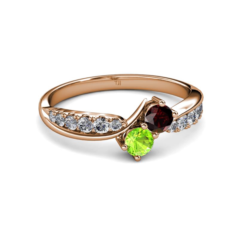 Red Garnet and Peridot 2 Stone with Side Diamonds Bypass Engagement Ring 0.94 ct tw in 14K Rose Gold. More Details ...