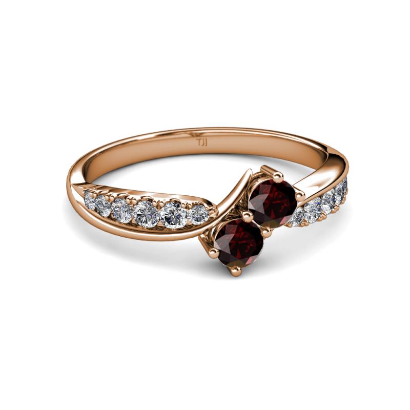 Red Garnet 2 Stone with Side Diamonds Bypass Engagement Ring 0.94 ct tw in 14K Rose Gold. More Details ...