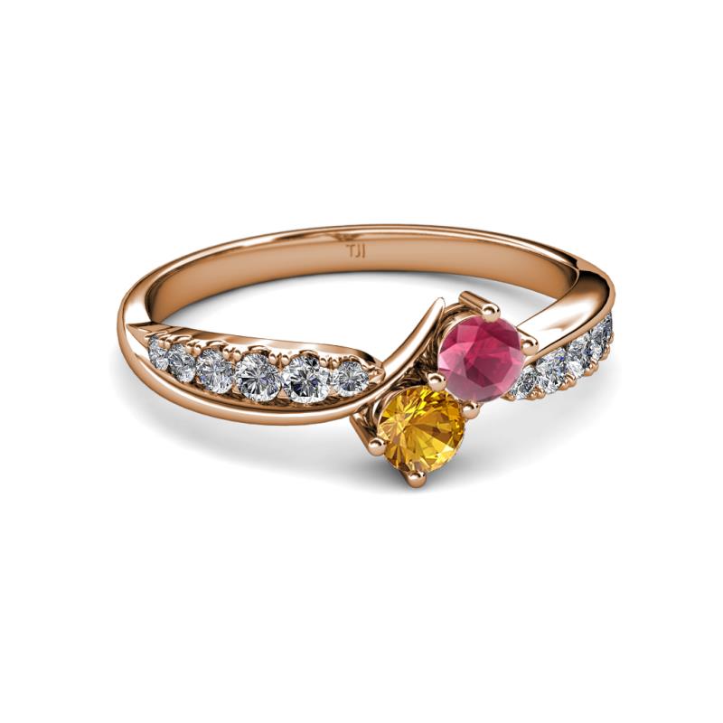 Rhodolite Garnet and Citrine 2 Stone with Side Diamonds Bypass Engagement Ring 0.82 ct tw in 14K Rose Gold. More Details ...