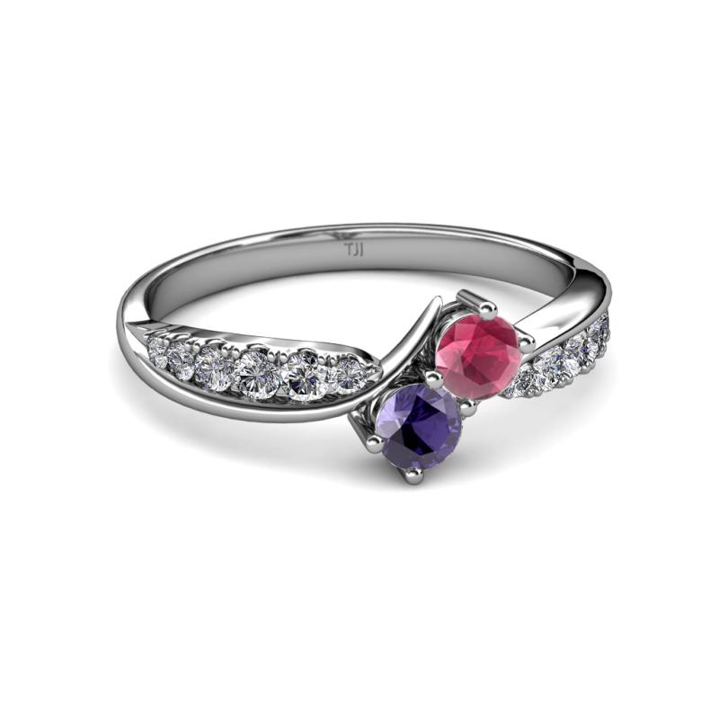 Rhodolite Garnet and Iolite 2 Stone with Side Diamonds Bypass Engagement Ring 0.82 ct tw in 14K White Gold. More Details ...