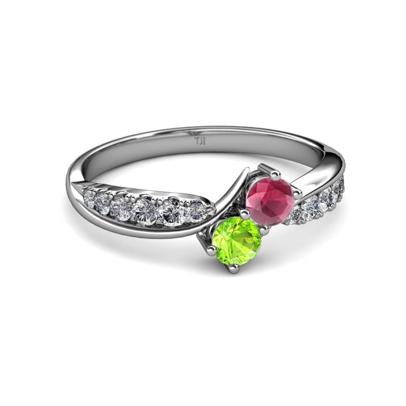 Rhodolite Garnet and Peridot 2 Stone with Side Diamonds Bypass Engagement Ring 0.93 ct tw in 14K White Gold. More Details ...