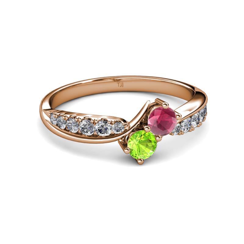 Rhodolite Garnet and Peridot 2 Stone with Side Diamonds Bypass Engagement Ring 0.93 ct tw in 14K Rose Gold. More Details ...