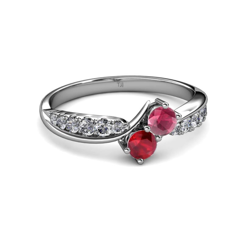 Rhodolite Garnet and Ruby 2 Stone with Side Diamonds Bypass Engagement Ring 0.88 ct tw in 14K White Gold. More Details ...