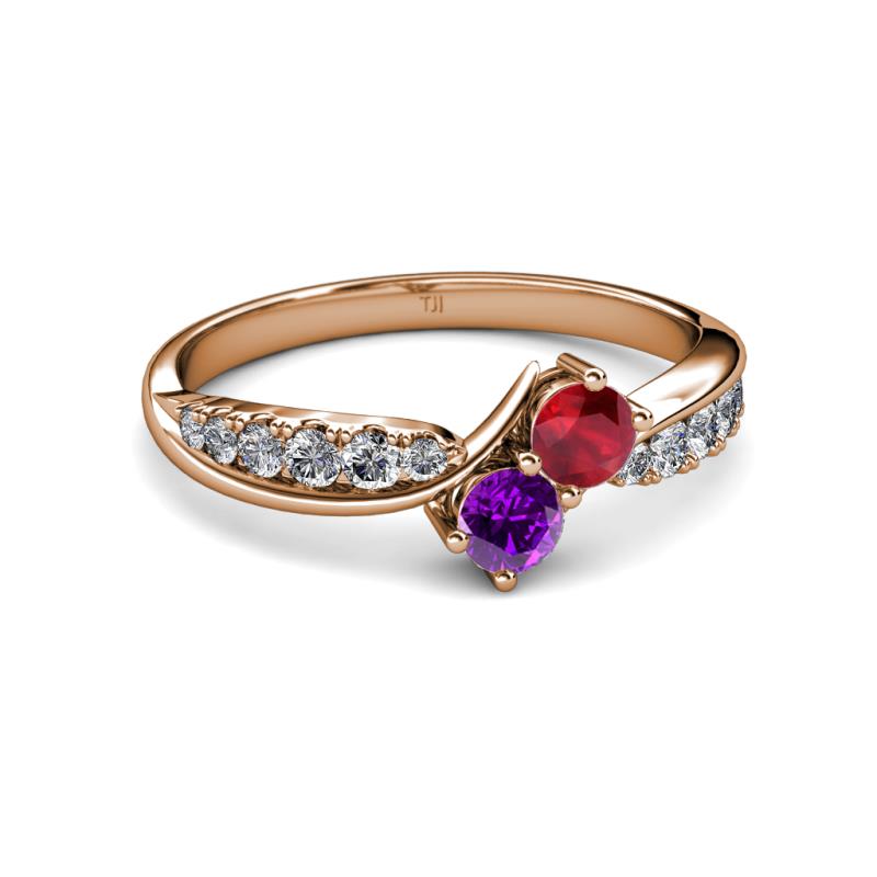 Ruby and Amethyst 2 Stone with Side Diamonds Bypass Engagement Ring 0.76 ct tw in 14K Rose Gold. More Details ...