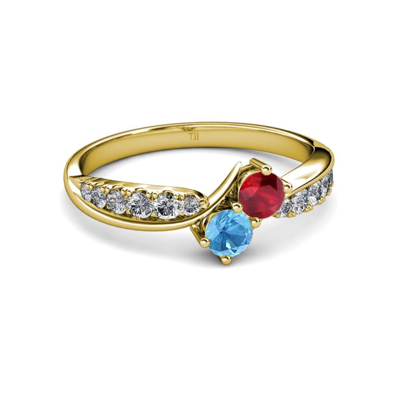 Ruby and Blue Topaz 2 Stone with Side Diamonds Bypass Engagement Ring 0.78 ct tw in 14K Yellow Gold. More Details ...