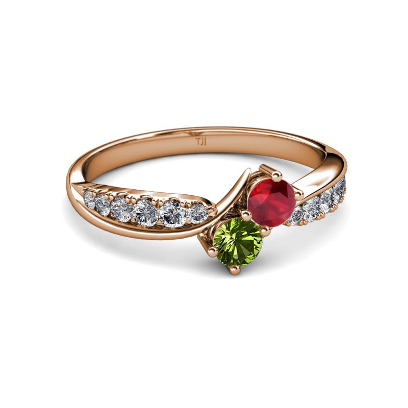 Ruby and Peridot 2 Stone with Side Diamonds Bypass Engagement Ring 0.88 ct tw in 14K Rose Gold. More Details ...