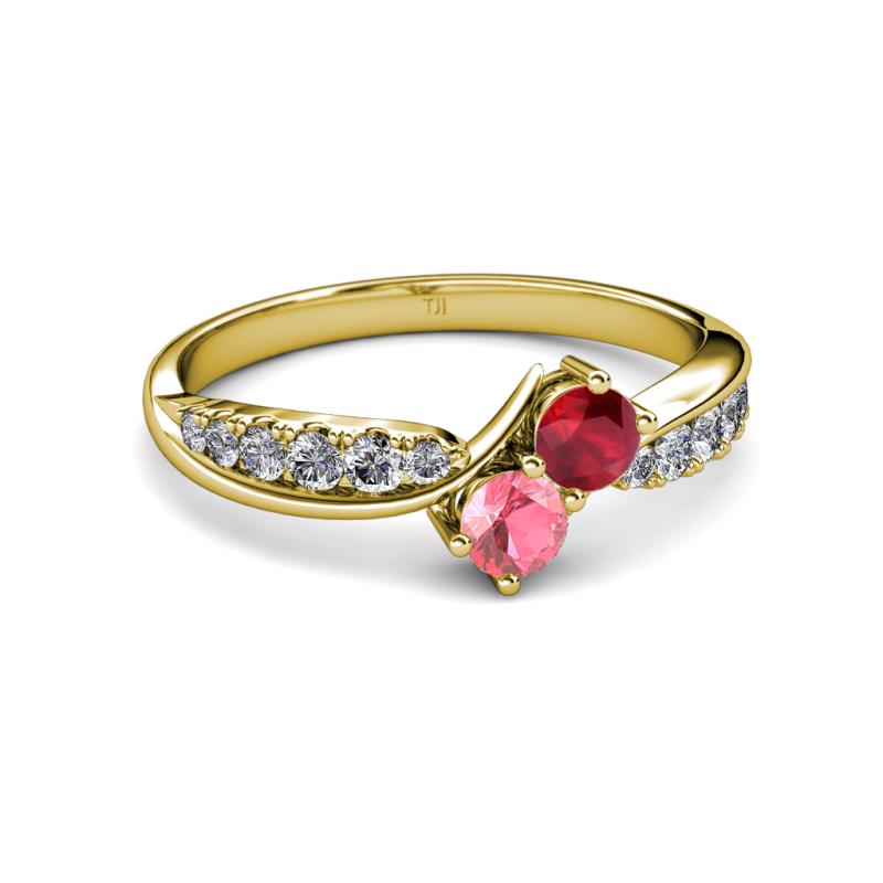 Ruby and Pink Tourmaline 2 Stone with Side Diamonds Bypass Engagement Ring 0.76 ct tw in 14K Yellow Gold. More Details ...