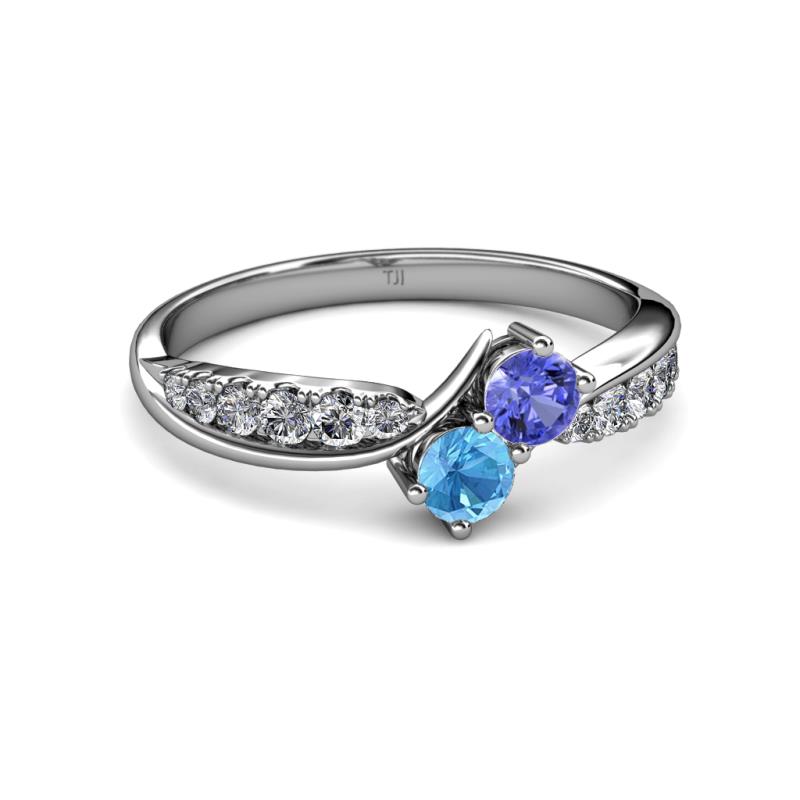 Tanzanite and Blue Topaz 2 Stone with Side Diamonds Bypass Engagement Ring 0.75 ct tw in 14K White Gold. More Details ...