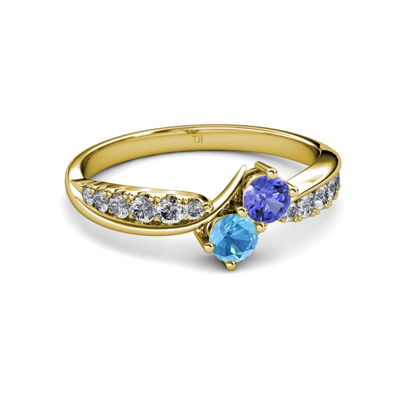 Tanzanite and Blue Topaz 2 Stone with Side Diamonds Bypass Engagement Ring 0.75 ct tw in 14K Yellow Gold. More Details ...