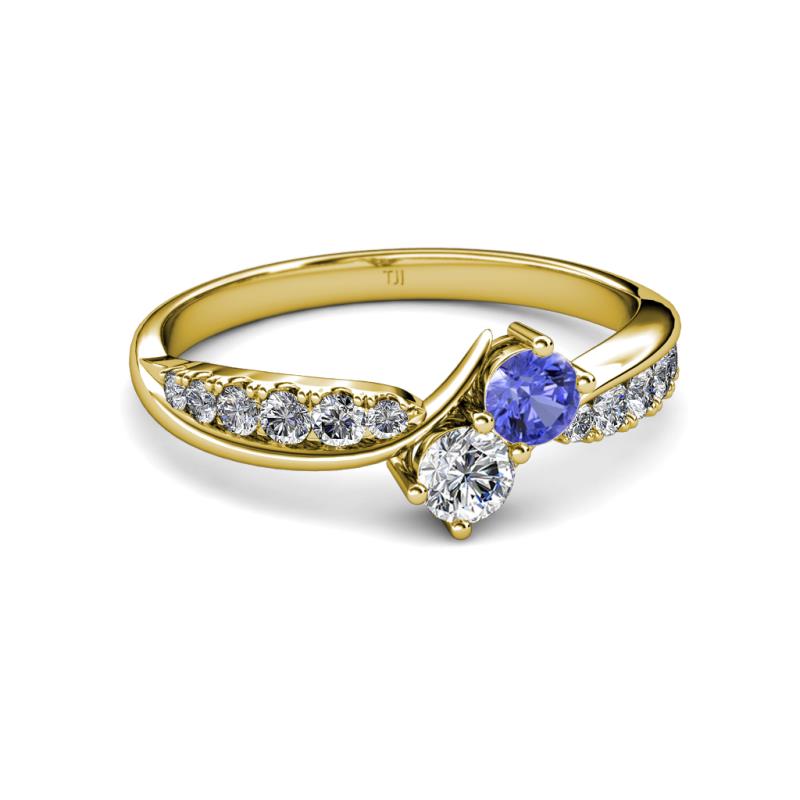 0.78 ctw Tanzanite and Diamond (4.00 mm) accented Natural Diamonds Women Two Stone Bypass Engagement Ring in 14K Yellow Gold. More Details ...