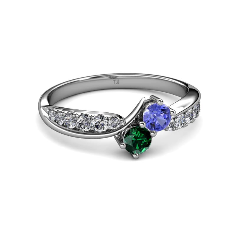 Tanzanite and Emerald 2 Stone with Side Diamonds Bypass Engagement Ring 0.74 ctw 14K White Gold More Details ...