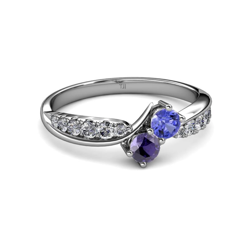 Tanzanite and Iolite 2 Stone with Side Diamonds Bypass Engagement Ring 0.73 ct tw in 14K White Gold. More Details ...