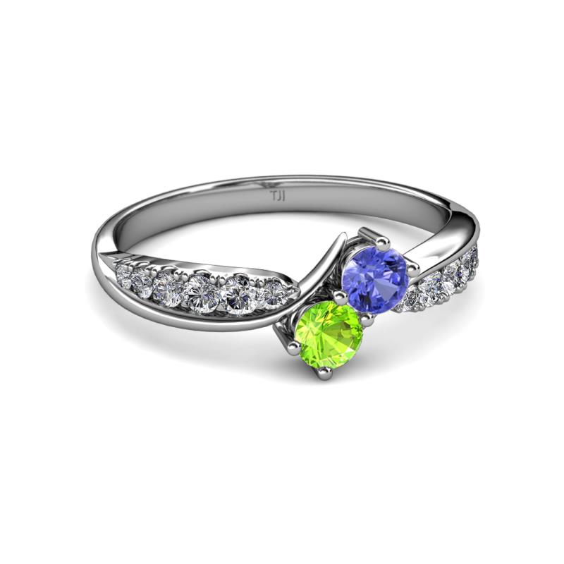 Tanzanite and Peridot 2 Stone with Side Diamonds Bypass Engagement Ring 0.85 ct tw in 14K White Gold. More Details ...