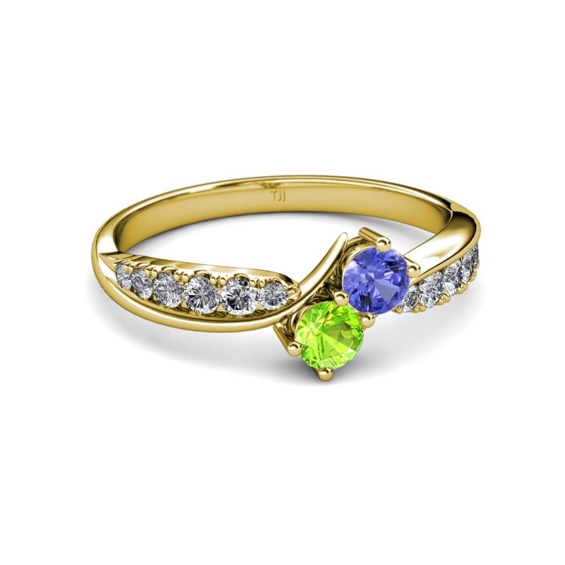 Tanzanite and Peridot 2 Stone with Side Diamonds Bypass Engagement Ring 0.85 ct tw in 14K Yellow Gold. More Details ...