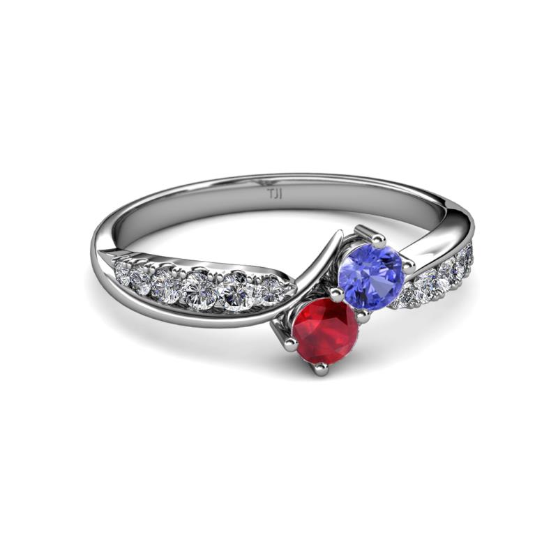 Tanzanite and Ruby 2 Stone with Side Diamonds Bypass Engagement Ring 0.79 ct tw in 14K White Gold. More Details ...