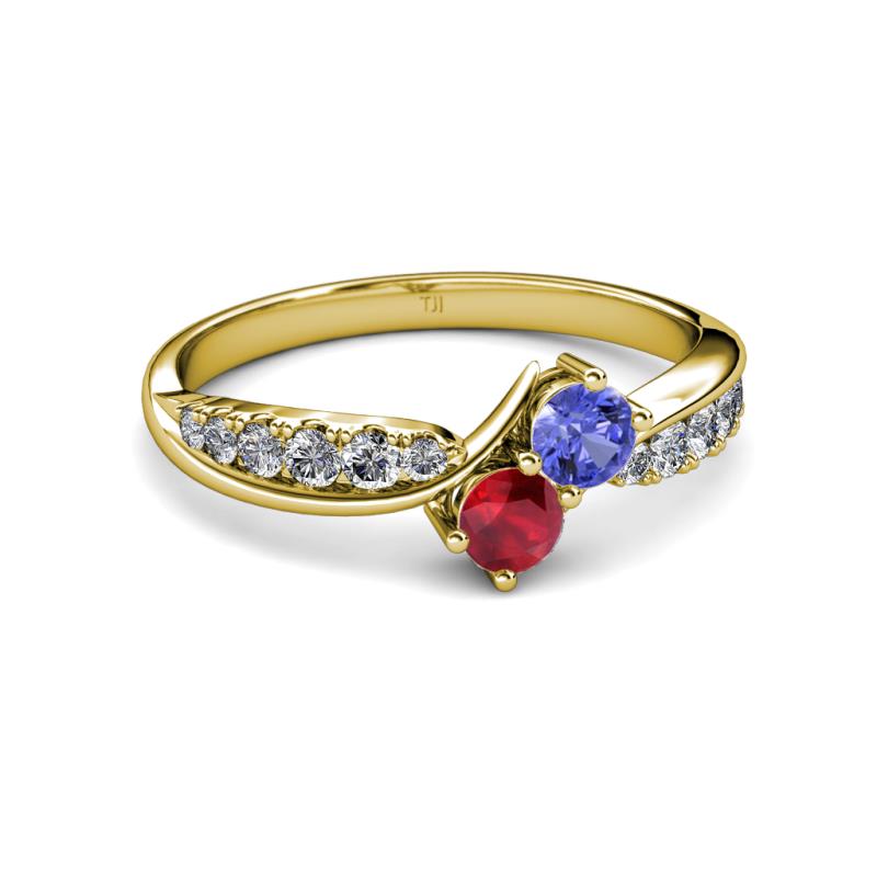 Tanzanite and Ruby 2 Stone with Side Diamonds Bypass Engagement Ring 0.79 ct tw in 14K Yellow Gold. More Details ...