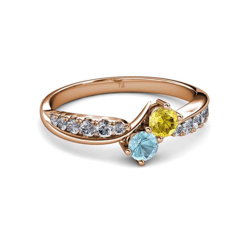 Yellow Sapphire and Aquamarine 2 Stone with Side Diamonds Bypass Engagement Ring 0.76 ct tw in 14K Rose Gold. More Details ...