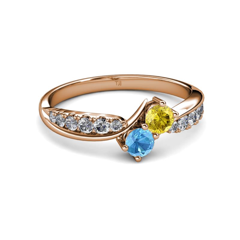 Yellow Sapphire and Blue Topaz 2 Stone with Side Diamonds Bypass Engagement Ring 0.78 ct tw in 14K Rose Gold. More Details ...