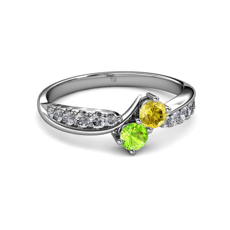 Yellow Sapphire and Peridot 2 Stone with Side Diamonds Bypass Engagement Ring 0.88 ct tw in 14K White Gold. More Details ...