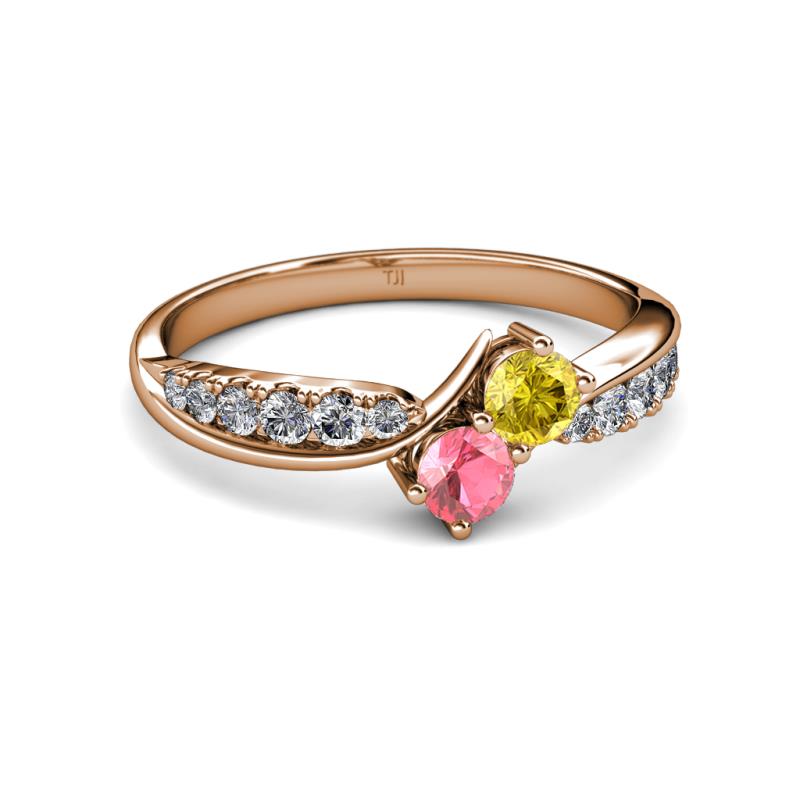 Yellow Sapphire and Pink Tourmaline 2 Stone with Side Diamonds Bypass Engagement Ring 0.76 ct tw in 14K Rose Gold. More Details ...