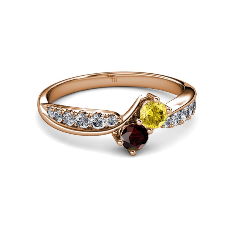 Yellow Sapphire and Red Garnet 2 Stone with Side Diamonds Bypass Engagement Ring 0.88 ct tw in 14K Rose Gold. More Details ...