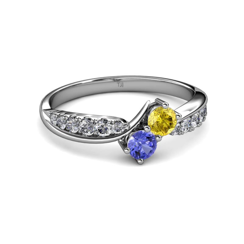 Yellow Sapphire and Tanzanite 2 Stone with Side Diamonds Bypass Engagement Ring 0.79 ct tw in 14K White Gold. More Details ...