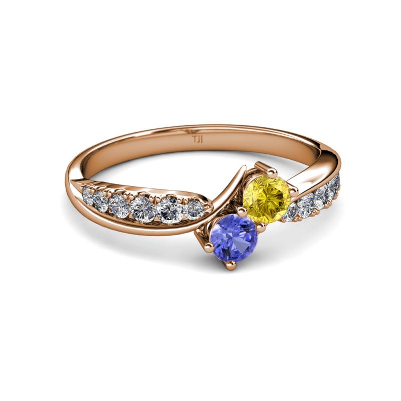 Yellow Sapphire and Tanzanite 2 Stone with Side Diamonds Bypass Engagement Ring 0.79 ct tw in 14K Rose Gold. More Details ...