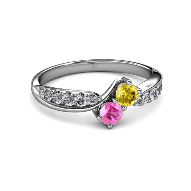 Yellow and Pink Sapphire 2 Stone with Side Diamonds Bypass Engagement Ring 0.83 ct tw in 14K White Gold. More Details ...