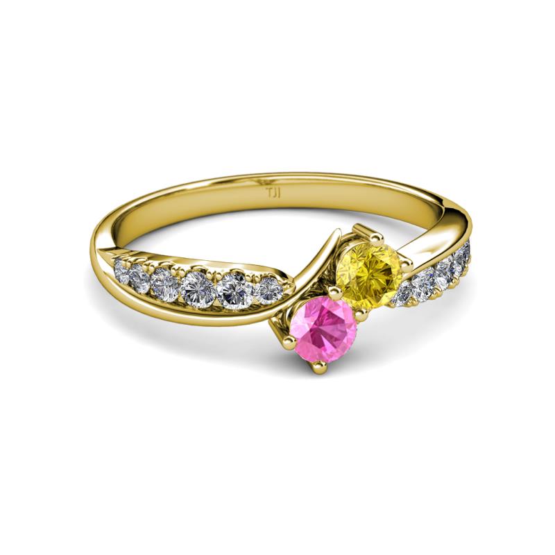 Yellow and Pink Sapphire 2 Stone with Side Diamonds Bypass Engagement Ring 0.83 ct tw in 14K Yellow Gold. More Details ...